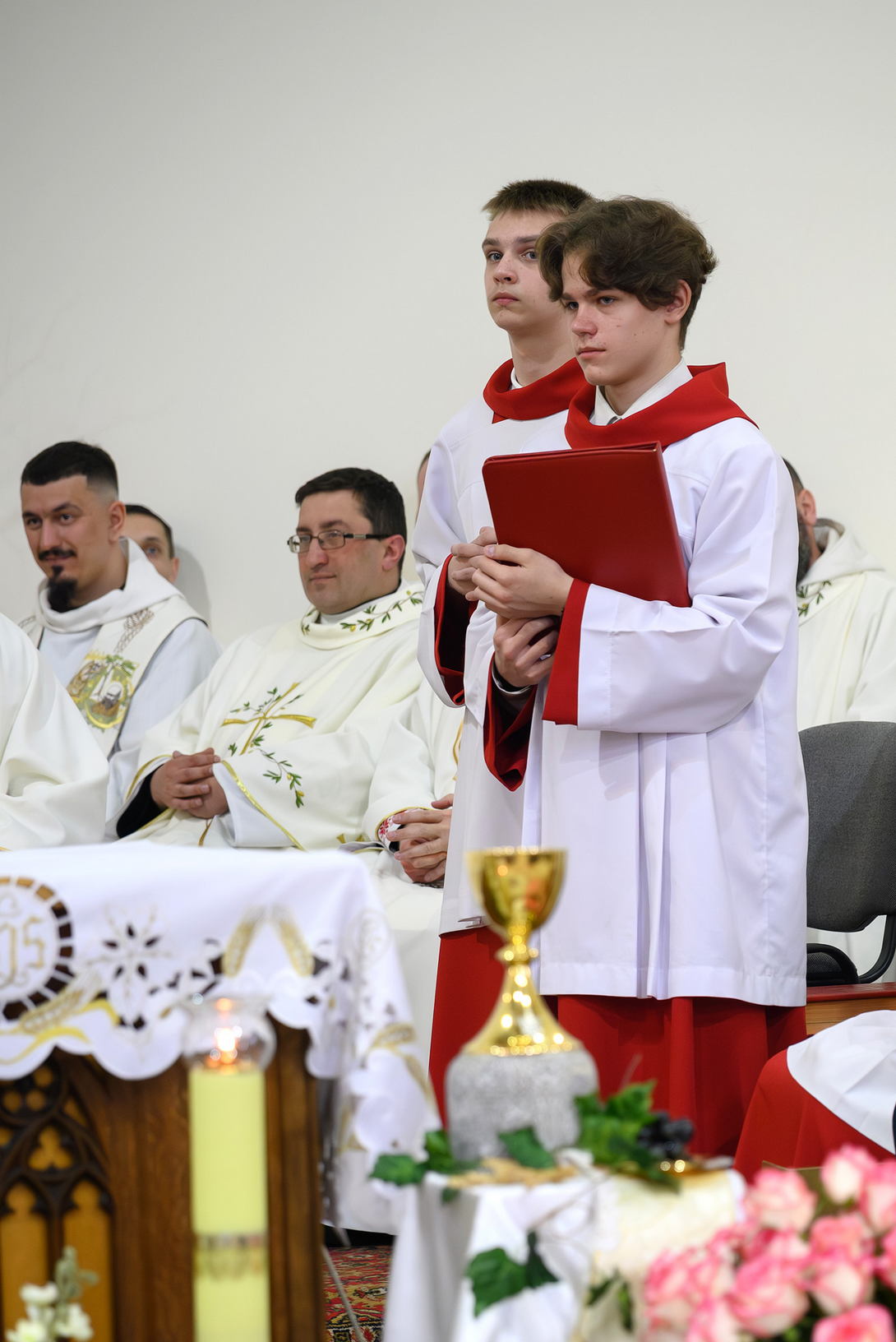 Пасля гаміліі быў удзелены сакрамэнт пасвячэння. Брат Сяргей склаў на рукі Арцыбіскупа Тадэвуша Кандрусевіча абяцанне пашаны і паслухмянасці дыяцэзіяльнаму біскупу і свайму вышэйшаму настаяцелю. Потым ён на знак свайго поўнага аддання сябе ў службе Богу ляжаў крыжам перад алтаром, а Касцёл спяваў літанію да ўсіх святых, склікаючы ўсё Неба і просячы аб заступніцтве.