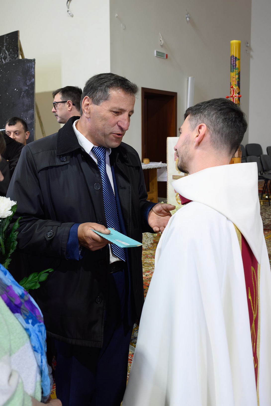 Пасля Эўхарыстыі новапрэзбітэр звярнуў да прысутных словы падзякі. Найперш, ён выказаў удзячнасць Пану Богу за ўласную гісторыю жыцця, за Яго прысутнасць у кожным моманце і за ласку паклікання. Потым падзякаваў за прыклад веры і любоў сваім бацькам і родным братам: “Вы з’яўляецеся самым дарагім падарункам у маім жыцці”.