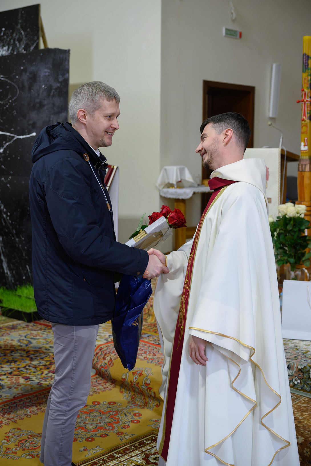 Ад імя усіх парафіянаў шчыра віншуем нашага новага святара і абяцаем сваю падтрымку справай і малітвай!