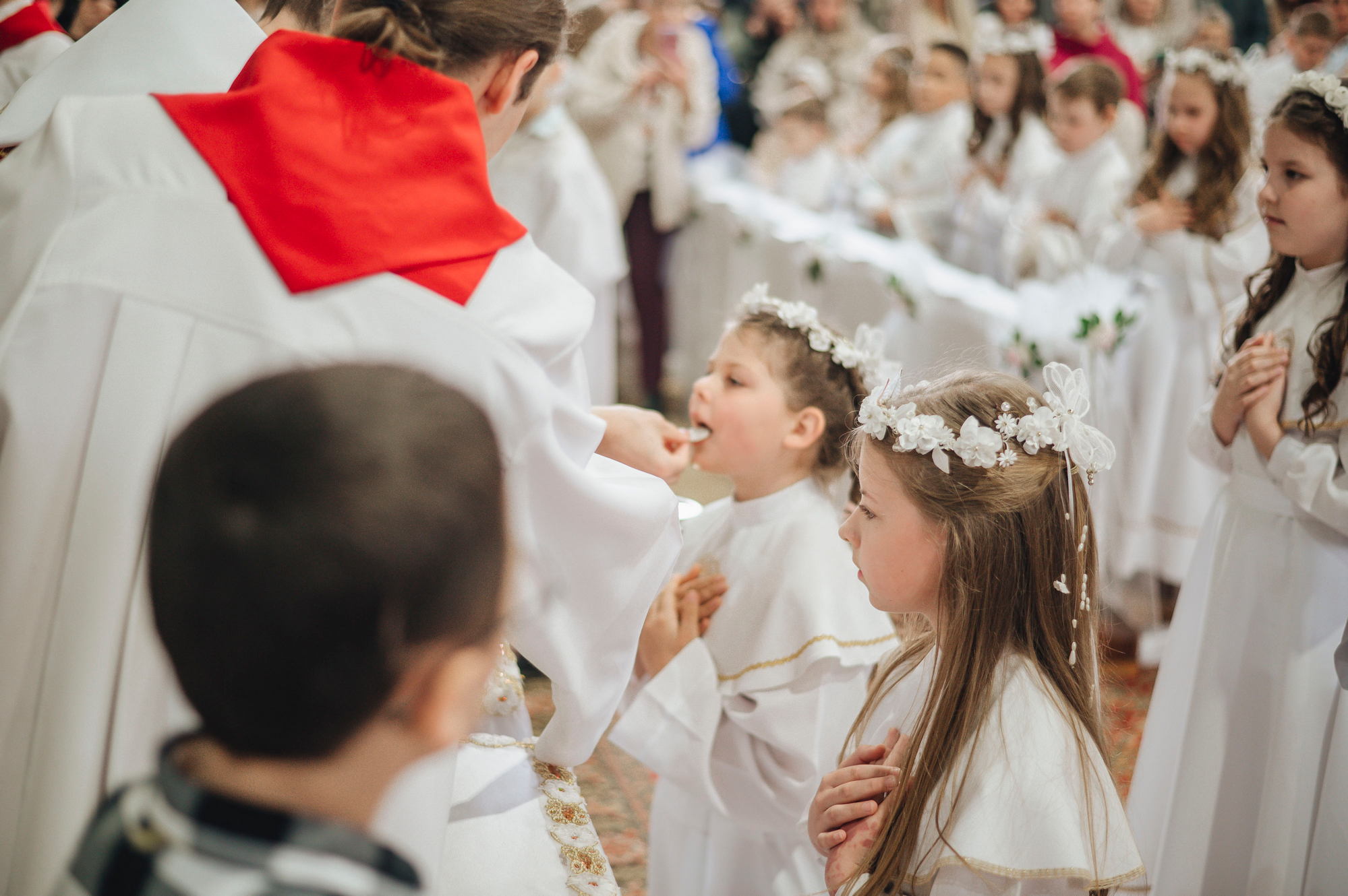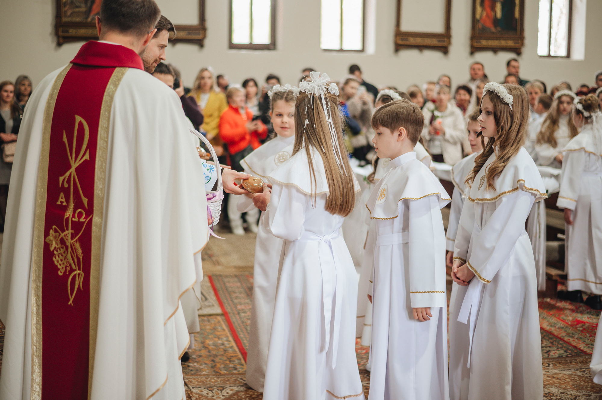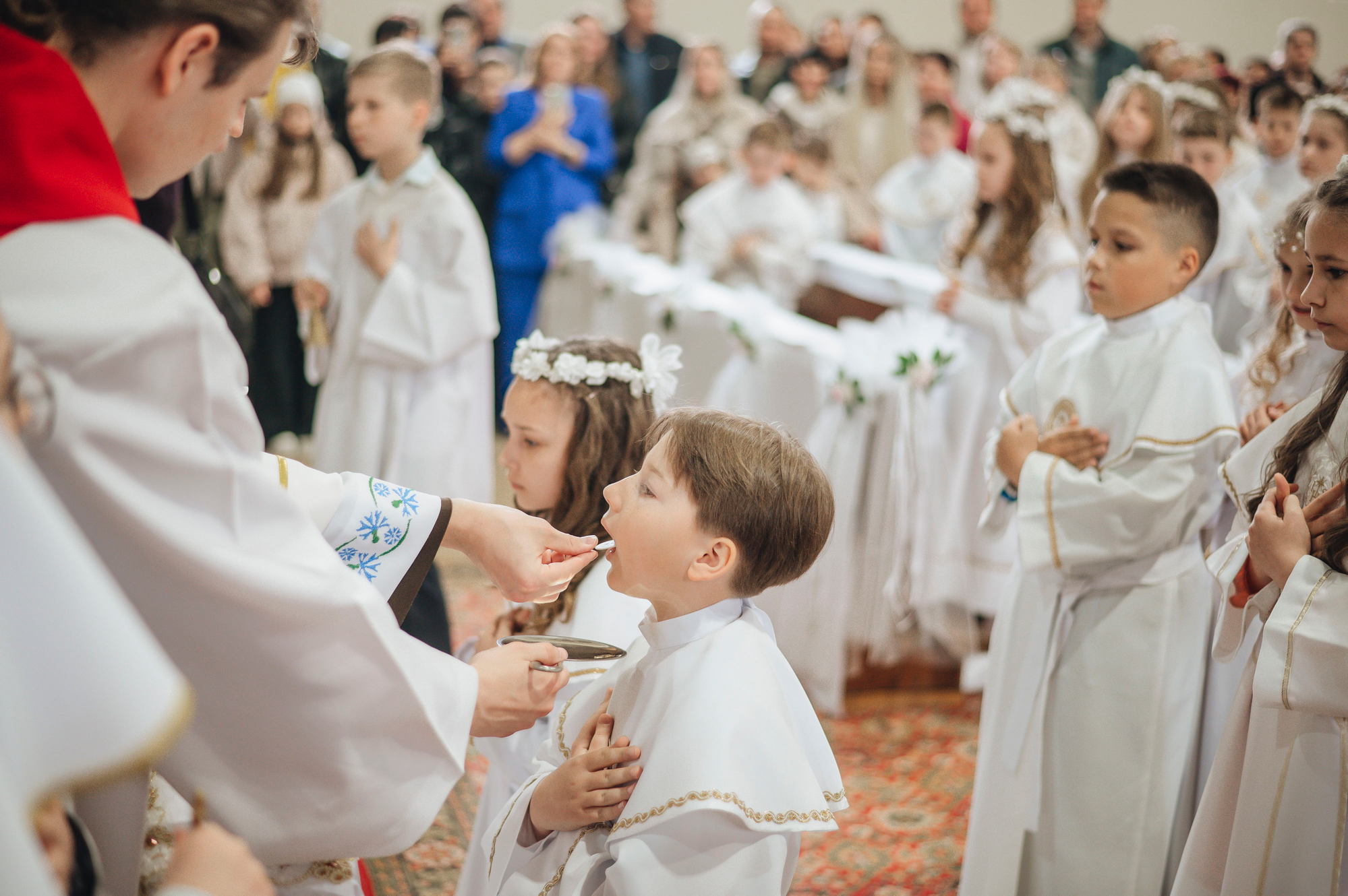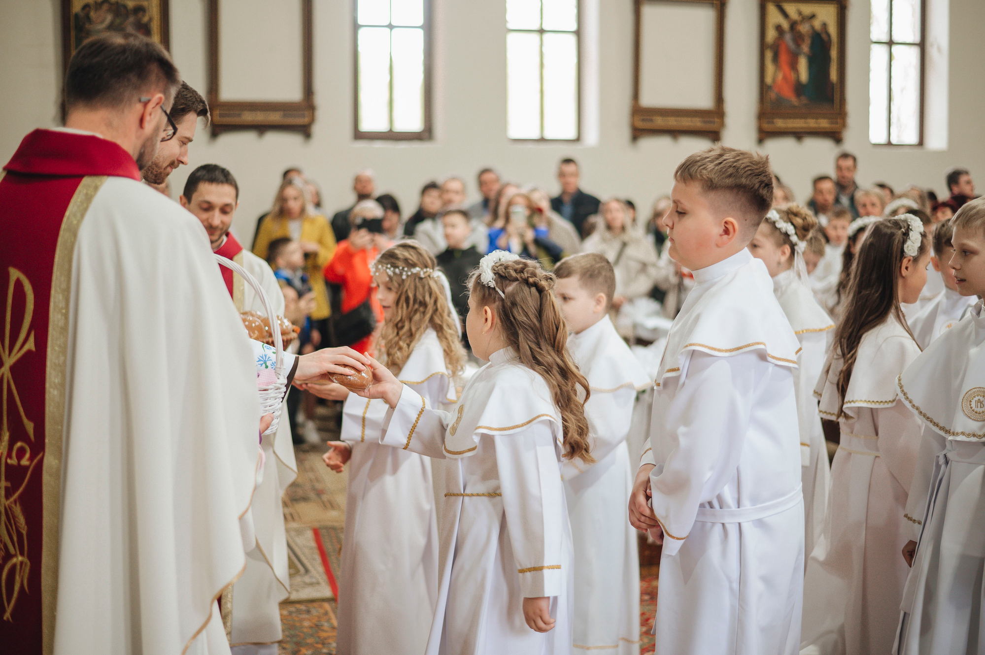 Напярэдадні дзеці, бацькі, святары сталі сведкамі таго, як праз сакрамэнт першай споведзі, праз першае свядомае вызнанне веры і аднаўленне абяцанняў хросту грахі, якія ляжалі на сэрцы, былі змыты. І вось той доўгачаканы момант, калі дзеці упершыню праз сакрамэнт Эўхарыстыі дакрануліся да Божай любові, калі Хрыстос упершыню насыціў іх Сабой! Неверагодна і кранальна бачыць, як хтосьці з усёй руплівасцю, з хваляваннем укленчвае перад Хрыстом, утоеным у маленькай гостыі, з гучным "Амэн" прымае Яго да сябе. Няхай гэтае маленькае слова "Амэн", якое змяшчае ў сабе вызнанне веры і згоду ісці за Добрым Пастырам, стане вялікім крокам насустрач Хрысту Уваскросламу.