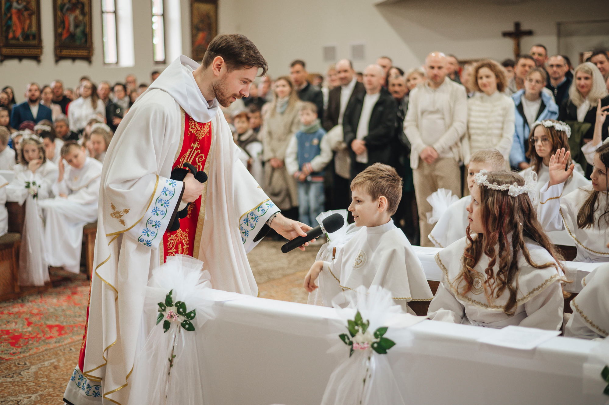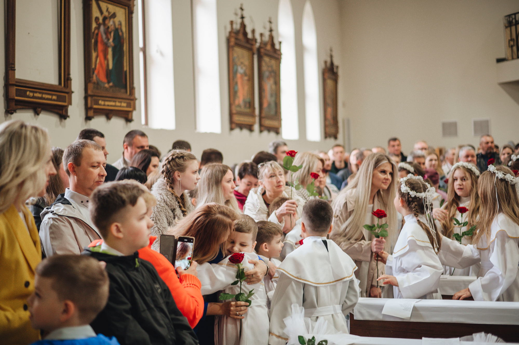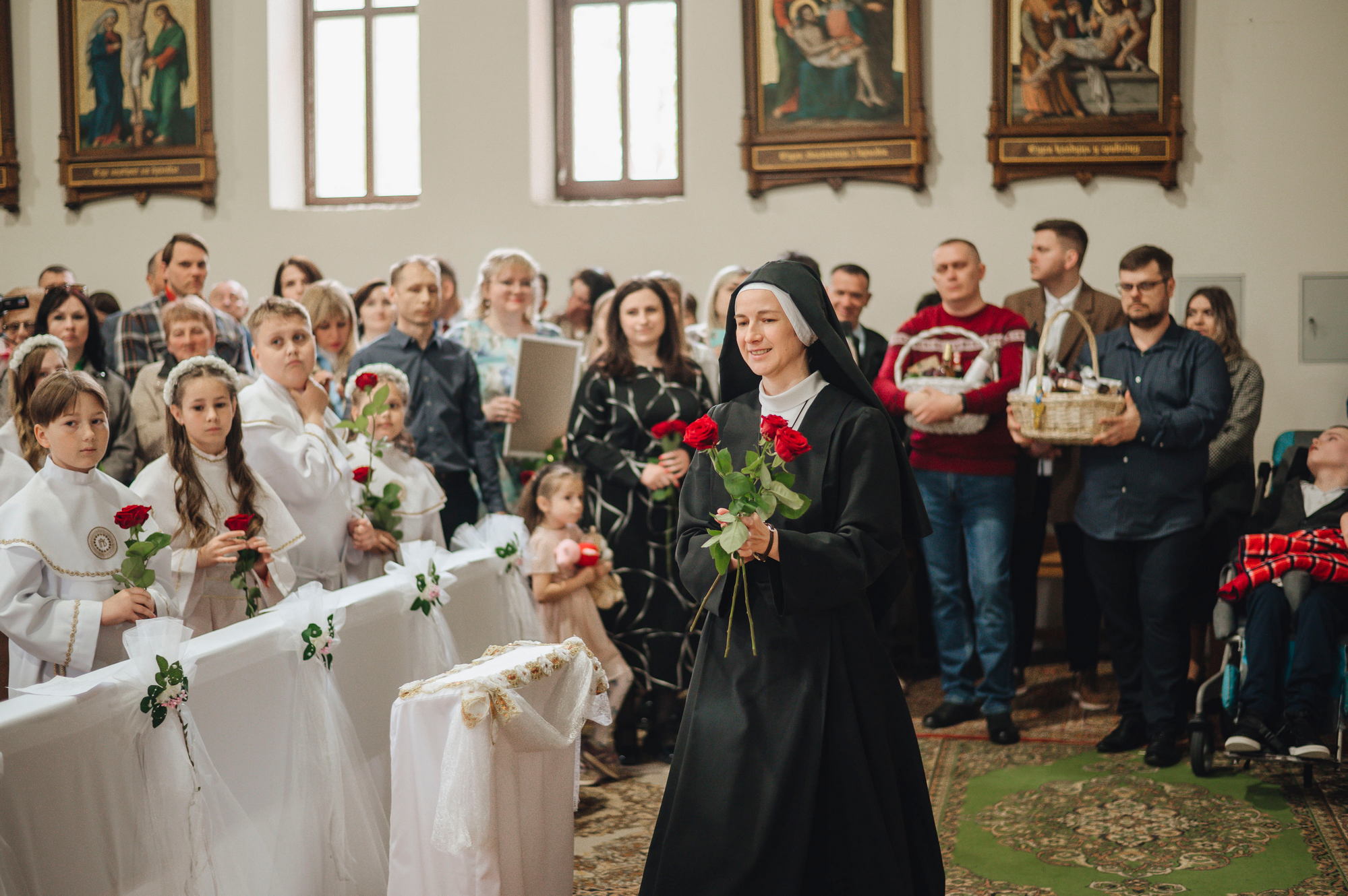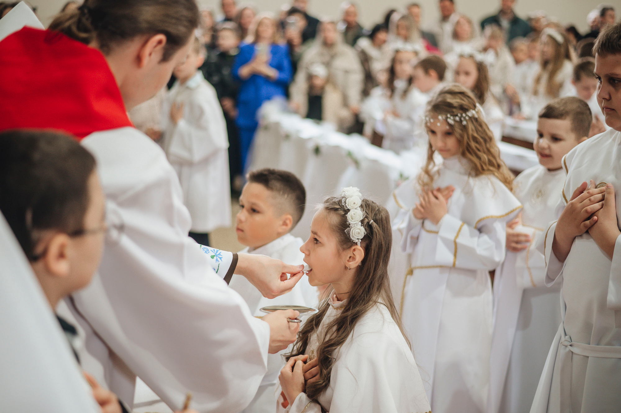 Напярэдадні дзеці, бацькі, святары сталі сведкамі таго, як праз сакрамэнт першай споведзі, праз першае свядомае вызнанне веры і аднаўленне абяцанняў хросту грахі, якія ляжалі на сэрцы, былі змыты. І вось той доўгачаканы момант, калі дзеці упершыню праз сакрамэнт Эўхарыстыі дакрануліся да Божай любові, калі Хрыстос упершыню насыціў іх Сабой! Неверагодна і кранальна бачыць, як хтосьці з усёй руплівасцю, з хваляваннем укленчвае перад Хрыстом, утоеным у маленькай гостыі, з гучным "Амэн" прымае Яго да сябе. Няхай гэтае маленькае слова "Амэн", якое змяшчае ў сабе вызнанне веры і згоду ісці за Добрым Пастырам, стане вялікім крокам насустрач Хрысту Уваскросламу.