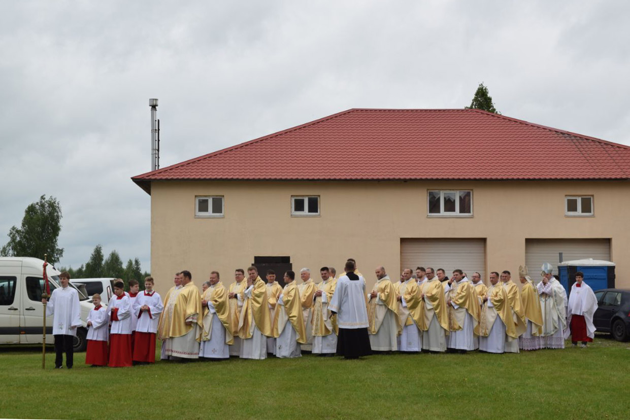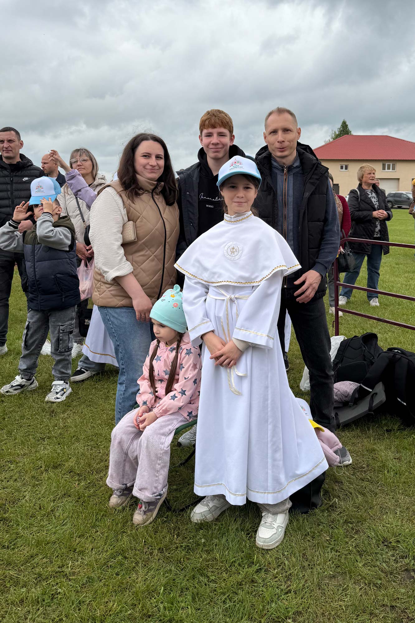 Кароткачасовы дождж падчас Святой Імшы выклікаў усмешкі на тварах пілігрымаў. Прыемна было назіраць, як дзеці і дарослыя клапаціліся адзін пра аднаго, запрашаючы пад свае парасоны. Сонейка, якое хутка абагрэла, абсушыла, дало надзею вернікам на працяг святочнага мерапрыемства.