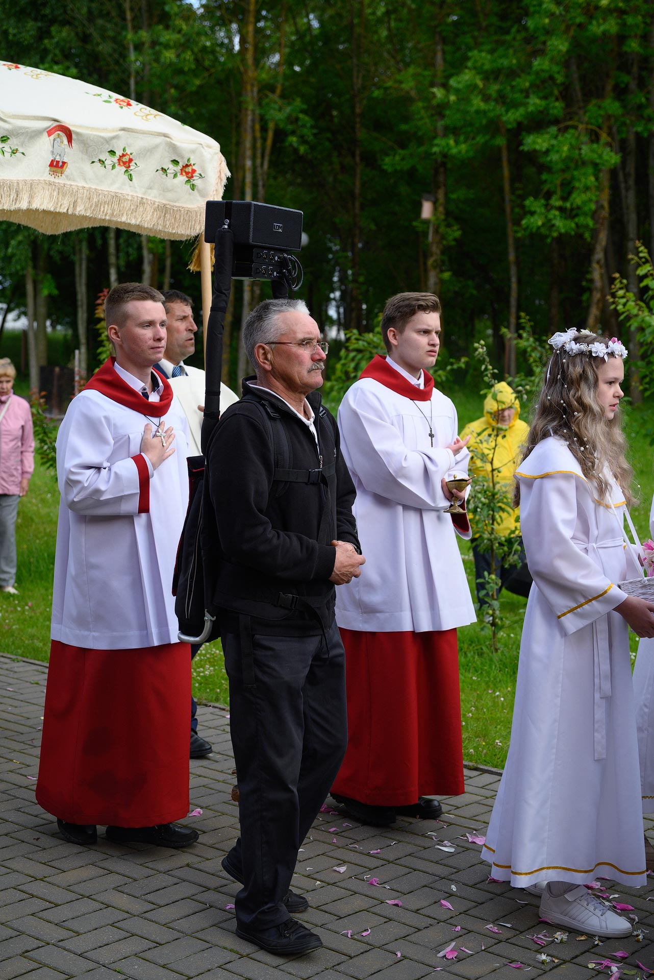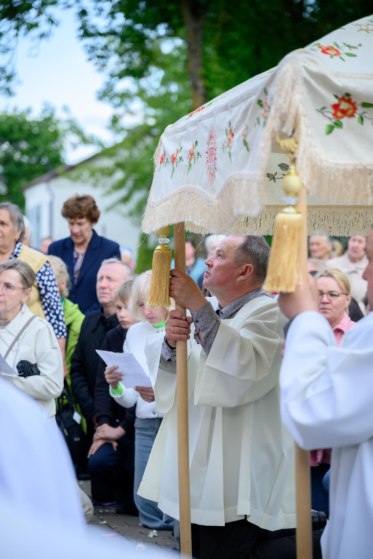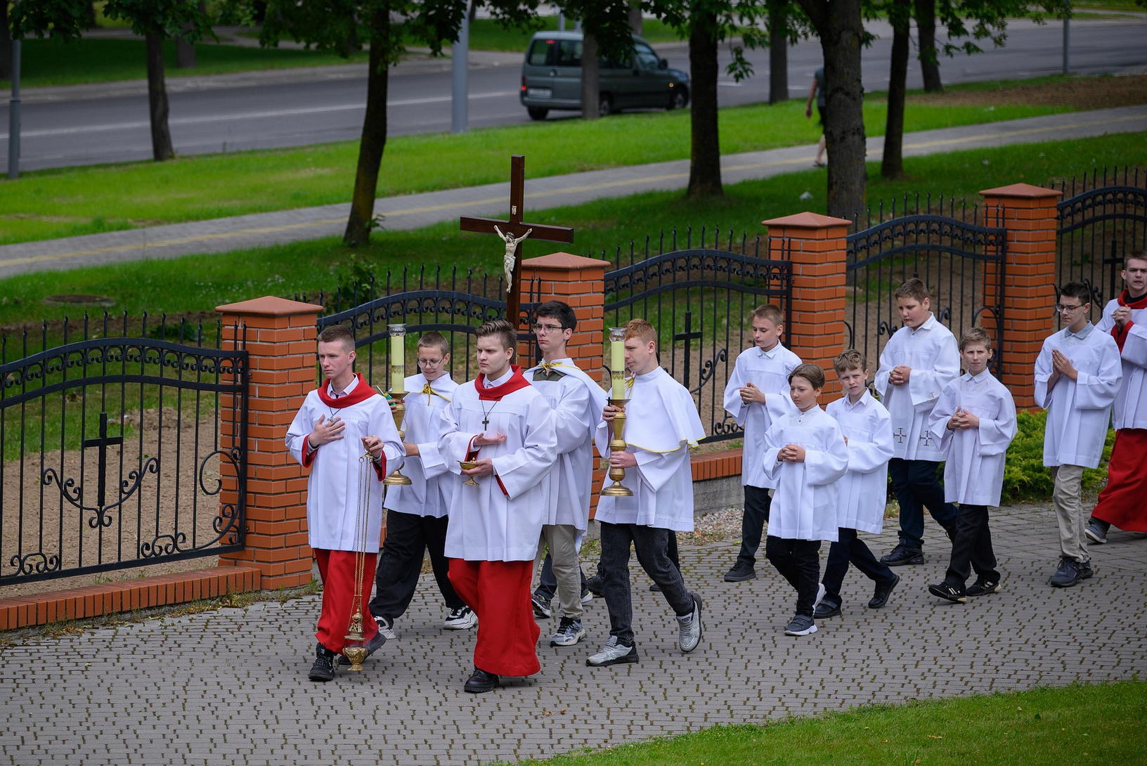 Падчас Імшы дзьмуў моцны вецер і ліў дождж, таму было невядома, ці адбудзецца Эўхарыстычная працэсія. Аднак пад канец літургіі дождж спыніўся і выглянула сонейка (бр. Уладзіслаў падазрае, што гэта адбылося дзякуючы веры парафіянаў :). Алтары, якія упрыгожвалі прадстаўнікі розных парафіяльных супольнасцяў, вытрымалі выпрабаванні і ўстаялі. Таму ўрачыстая працэсія адбылася. Вернікі ўслед за Жывым Богам у Найсвяцейшым Сакрамэнце прайшлі вакол касцёла, спыняючыся каля чатырох алтароў, каб узнесці Богу малітву праслаўлення і прасіць аб бласлаўленні і абароне ад зла для ўсіх жыхароў горада.