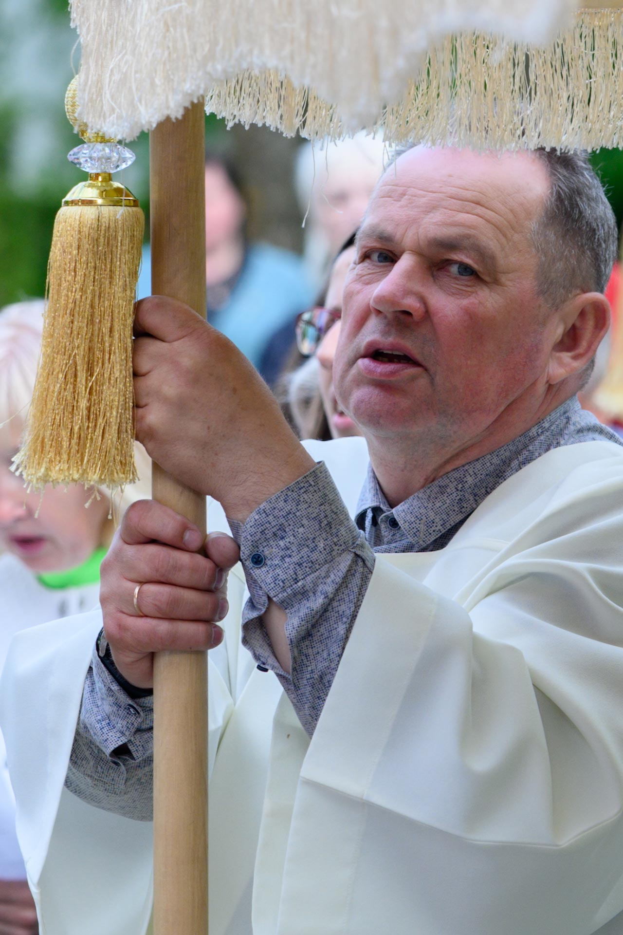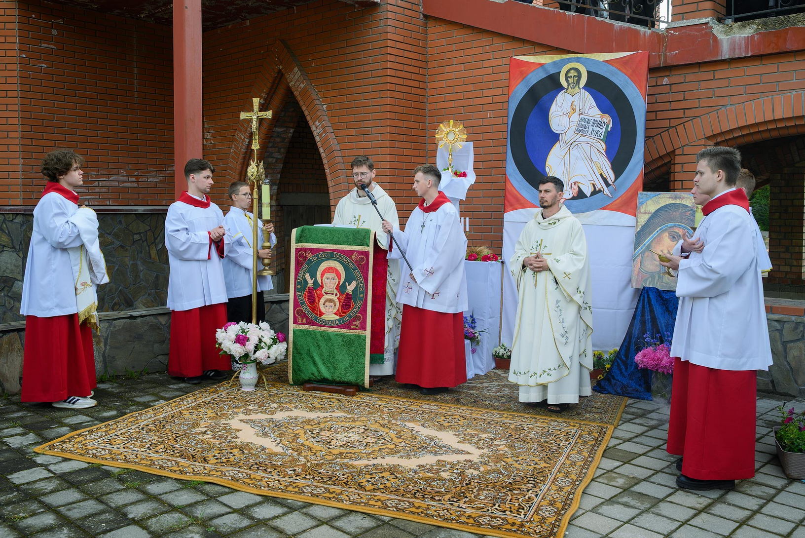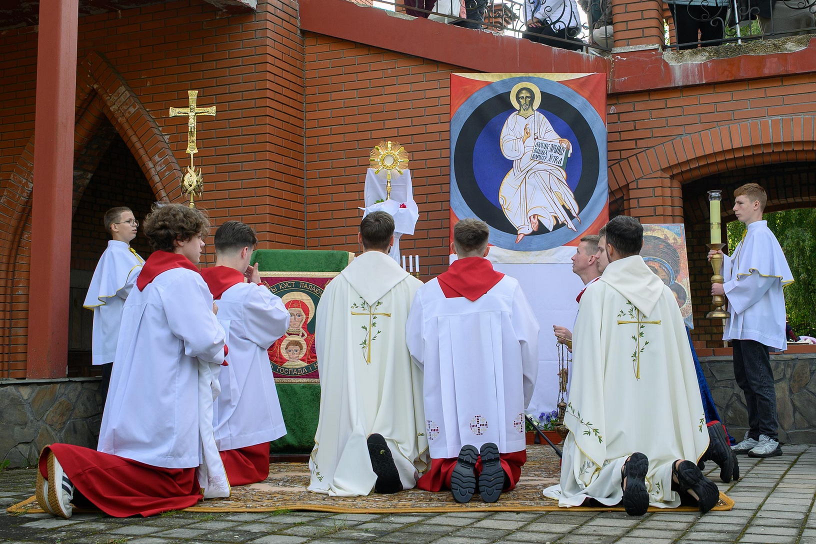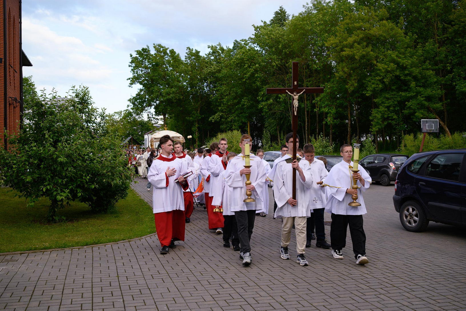 Падчас Імшы дзьмуў моцны вецер і ліў дождж, таму было невядома, ці адбудзецца Эўхарыстычная працэсія. Аднак пад канец літургіі дождж спыніўся і выглянула сонейка (бр. Уладзіслаў падазрае, што гэта адбылося дзякуючы веры парафіянаў :). Алтары, якія упрыгожвалі прадстаўнікі розных парафіяльных супольнасцяў, вытрымалі выпрабаванні і ўстаялі. Таму ўрачыстая працэсія адбылася. Вернікі ўслед за Жывым Богам у Найсвяцейшым Сакрамэнце прайшлі вакол касцёла, спыняючыся каля чатырох алтароў, каб узнесці Богу малітву праслаўлення і прасіць аб бласлаўленні і абароне ад зла для ўсіх жыхароў горада.