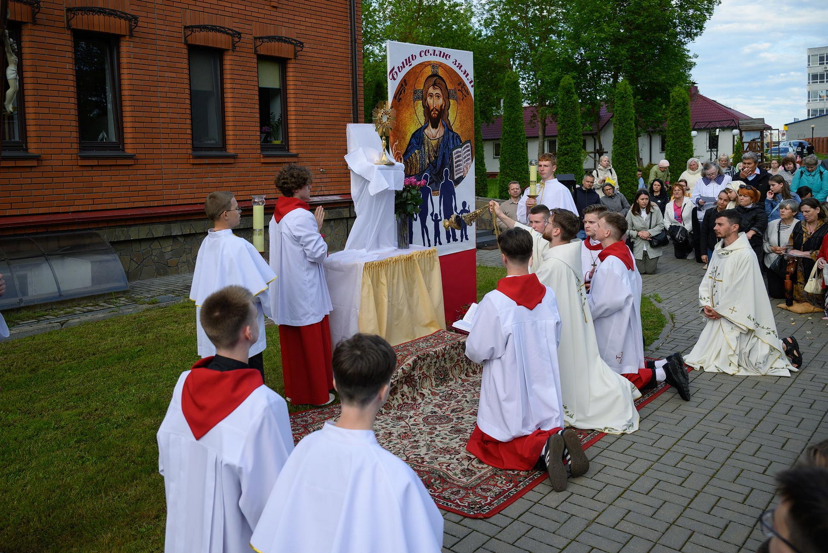 У чацвер 22 чэрвеня, у дзень, калі Касцёл адзначае ўрачыстасць Цела і Крыві Пана нашага Езуса Хрыста, вернікі нашай парафіі, не зважаючы на дажджлівае надвор'е, сабраліся на вячэрняй святой Імшы, каб падзякаваць Богу за найвялікшы дар - дар Яго самога ў Найсвяцейшым Сакрамэнце.