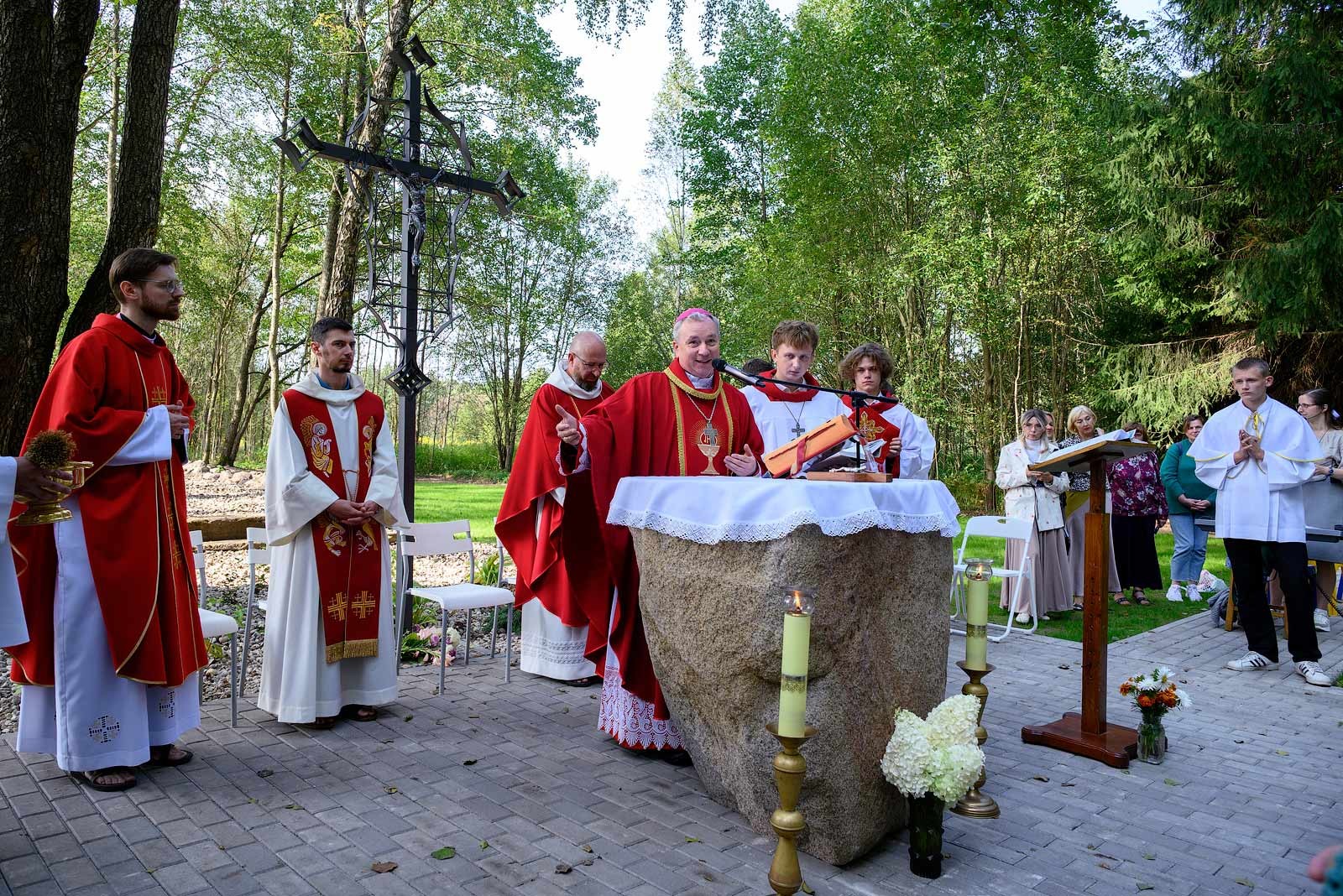 Напачатку святой Імшы Яго Эксцэленцыя асвяціў новы крыж і палявы алтар.