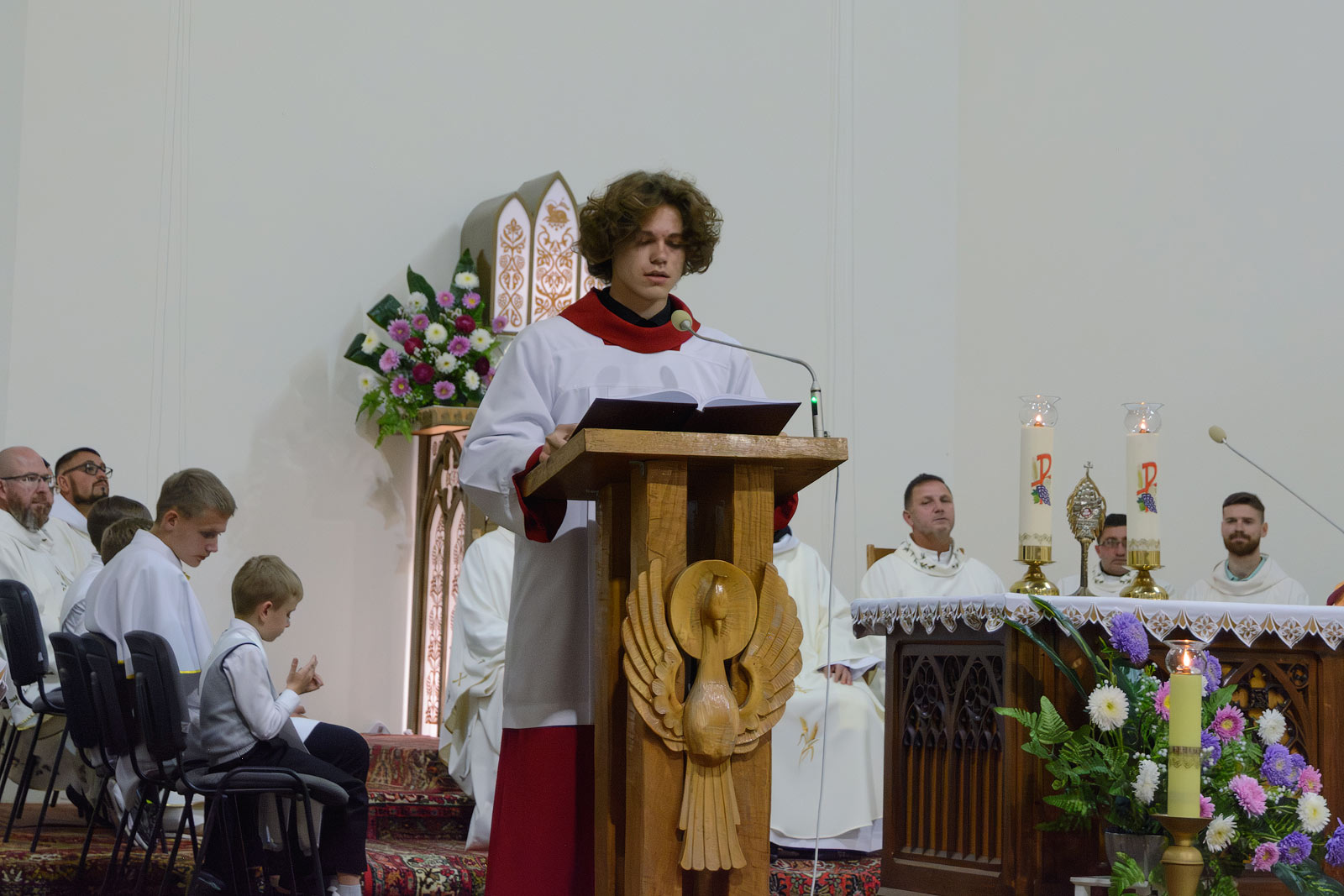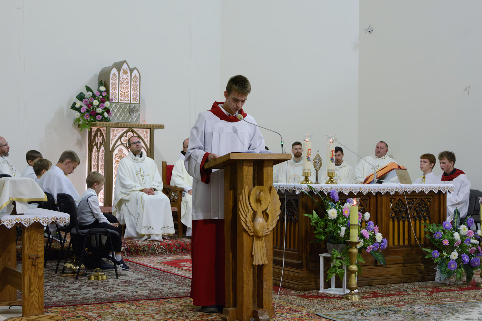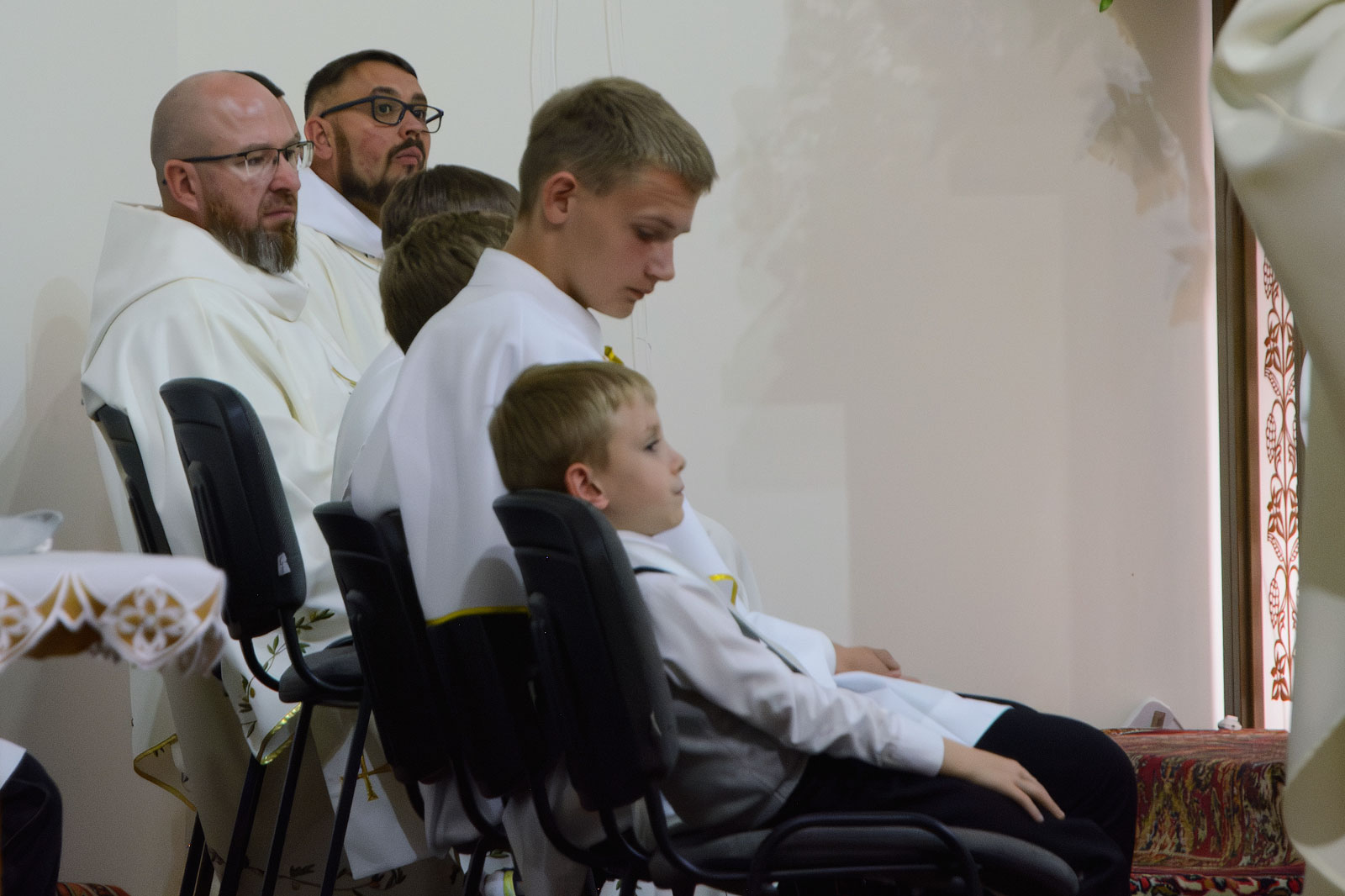 Напачатку ўрачыстасці бр. Андрэй Жылевіч прывітаў гасцей: новага дырэктара салезіянскай супольнасці ў Смаргоні кс. Алега Каралёва SDB, пробашча парафіі св. Арханёла Міхала ў Смаргоні кс. Артура Ляшнеўскага SDB, кс. кан. Юрыя Быкава, кс. Юрыя Бараўнёва, кс. Паўла Шылака, кс. Андрэя Фёдарава. Асаблівым госцем урачыстасці быў бр. Яўген Голуб OFMConv, францішканін з Івянца, які ўзначаліў св. Імшу, а таксама скіраваў да прысутных слова.