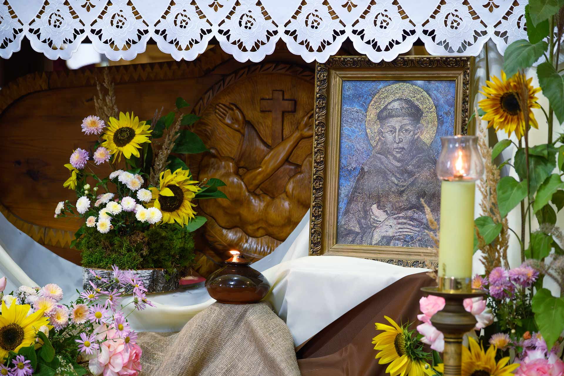 З другога боку, гэта ўспамін св. Францішка Асізскага, заснавальніка і апекуна ордэна братоў капуцынаў. І гэта невыпадкова. Гэтак, як Францішак, які жыў на мяжы 12 і 13 стагоддзяў у складаныя часы шматлікіх ерэтычных плыняў і ўласным прыкладам жыцця ва ўбогасці і цярпенні, служэннем бедным, малітвай, прысутнасцю сярод людзей спрычыніўся да шматлікіх навяртанняў і аднаўлення веры, так і ў нашыя часы яго духоўныя сыны служаць па ўсім свеце. А некалі з’явіліся і на докшыцкай зямлі. “Калісьці тут, каля Докшыц, у Ваўкалаце працаваў кс. Пётр Ясевіч. Ён скончыў семінарыю ў Рызе, насіў чорную сутану, і ніхто ў тыя часы не ведаў, што ён належыць да ордэна капуцынаў. Менавіта ён заўважыў патрэбу збудаваць тут, у Докшыцах, святыню. Можна сказаць, што сваім натхненнем ён заклаў першую цагліну ў яе паўстанні. Працягваць працу прыехалі ўжо іншыя браты капуцыны, якія за гэты час шмат разоў змяняліся, і кожны сваёй працай зрабіў унёсак у тое, што мы бачым тут, - распавёў Яго Эксцэленцыя. – Не толькі ў збудаванне сцен, але, што найважней, у будаванне парафіі, каб кожнаму хацелася прыйсці ў святыню і адчуваць, што тут ён дома. Гэта нялёгкая справа”.