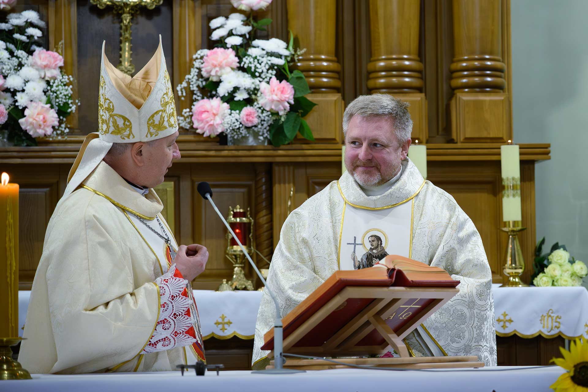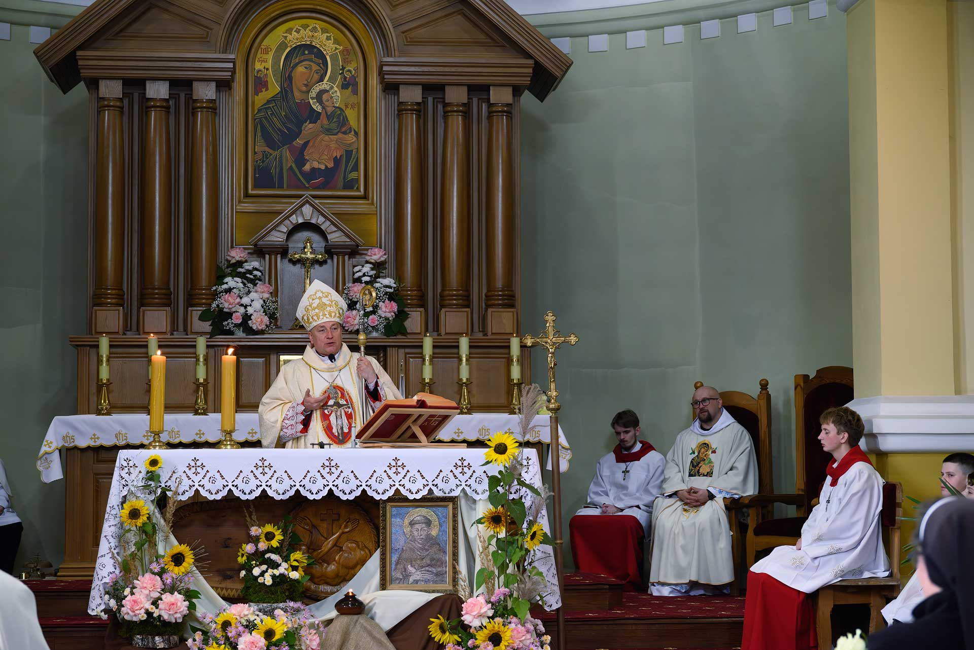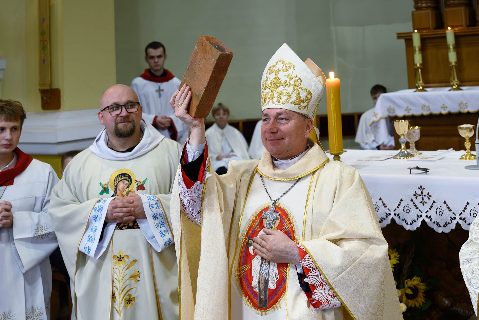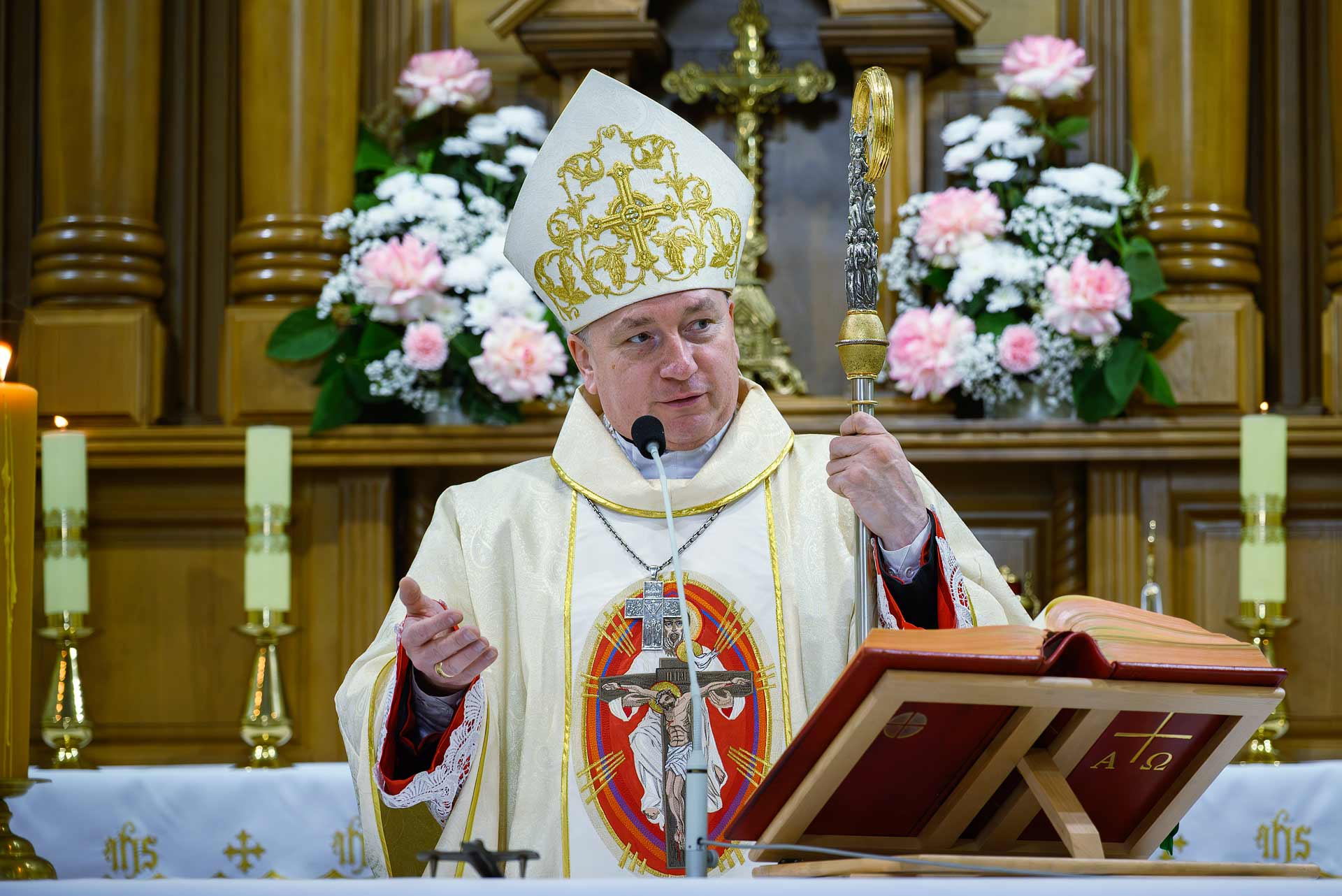 У гаміліі уладыка адзначыў, што гэты дзень для парафіі з’яўляецца падвойным святам. З аднаго боку, гэта юбілейная дата з моманту асвячэння касцёла, калі ён ператварыўся са звычайнага будынка ў дом Божы - выключную уласнасць Хрыста, месца, дзе адбываецца сапраўдная сустрэча чалавека з Богам і дзе чалавек дакранаецца да святая святых. Найперш, іерарх выказаў словы падзякі ўсім, хто прымаў удзел у будоўлі касцёла, які сваім прывабным знешнім выглядам ўпрыгожвае цэнтр горада: “Кожная цагелка – гэта кавалачак сэрца кожнага з людзей, якія дапамагалі будоўлі. Кожная малітва, ахвяра, праца - важныя. І пры будаванні, і далей пры ўтрыманні святыні”.