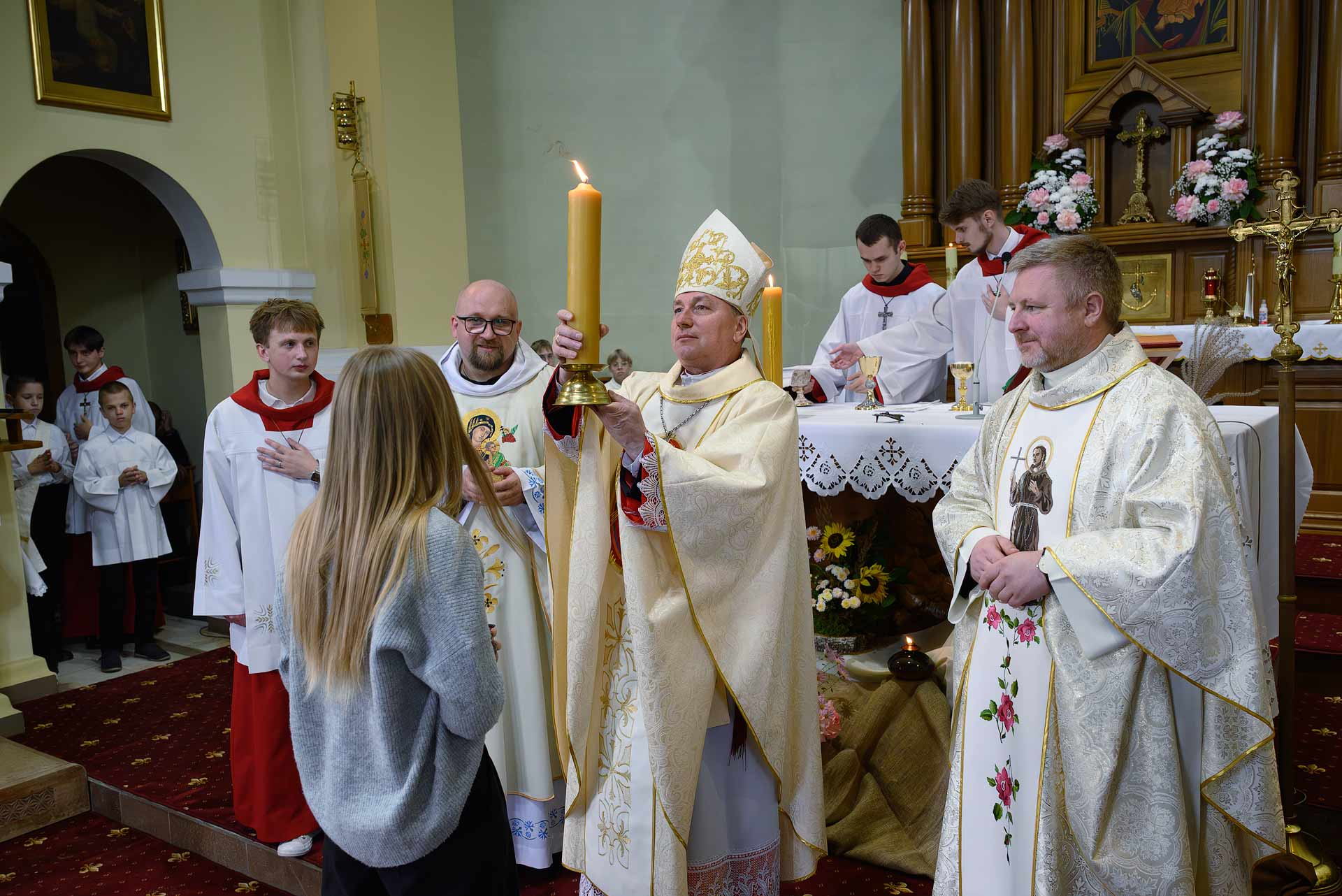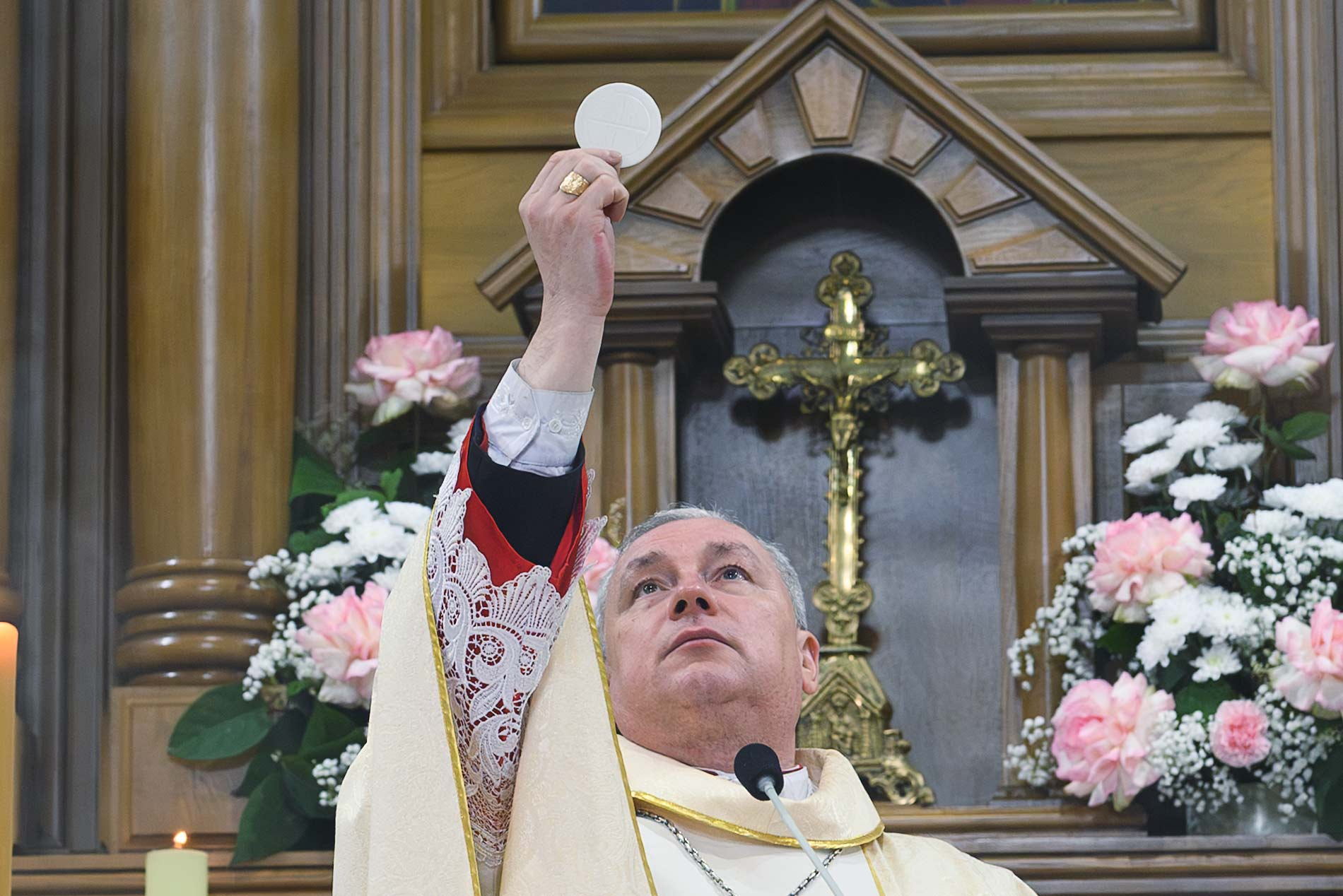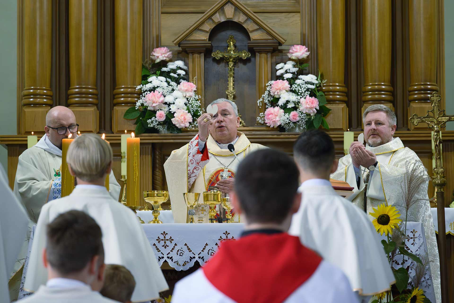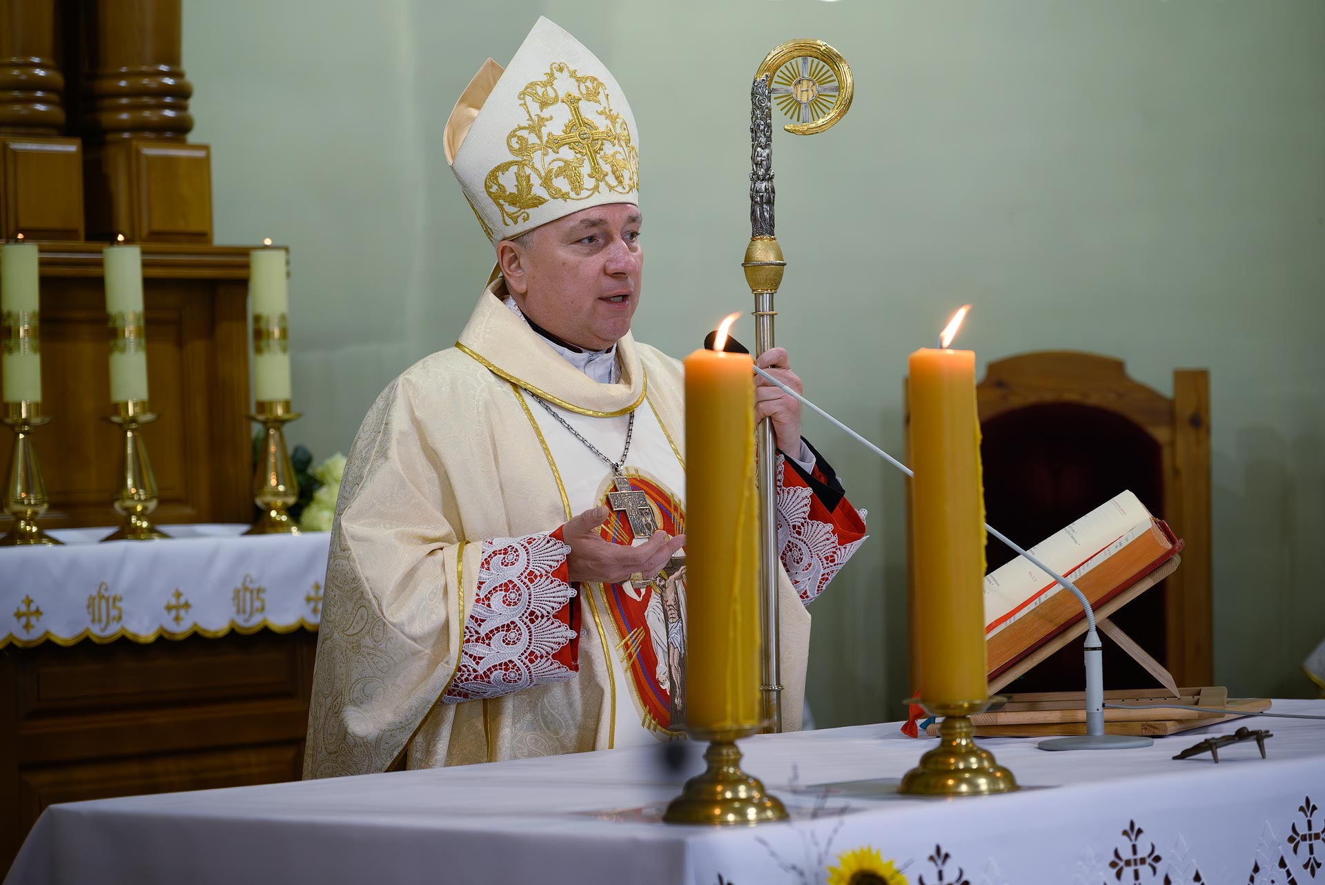 У гаміліі уладыка адзначыў, што гэты дзень для парафіі з’яўляецца падвойным святам. З аднаго боку, гэта юбілейная дата з моманту асвячэння касцёла, калі ён ператварыўся са звычайнага будынка ў дом Божы - выключную уласнасць Хрыста, месца, дзе адбываецца сапраўдная сустрэча чалавека з Богам і дзе чалавек дакранаецца да святая святых. Найперш, іерарх выказаў словы падзякі ўсім, хто прымаў удзел у будоўлі касцёла, які сваім прывабным знешнім выглядам ўпрыгожвае цэнтр горада: “Кожная цагелка – гэта кавалачак сэрца кожнага з людзей, якія дапамагалі будоўлі. Кожная малітва, ахвяра, праца - важныя. І пры будаванні, і далей пры ўтрыманні святыні”.