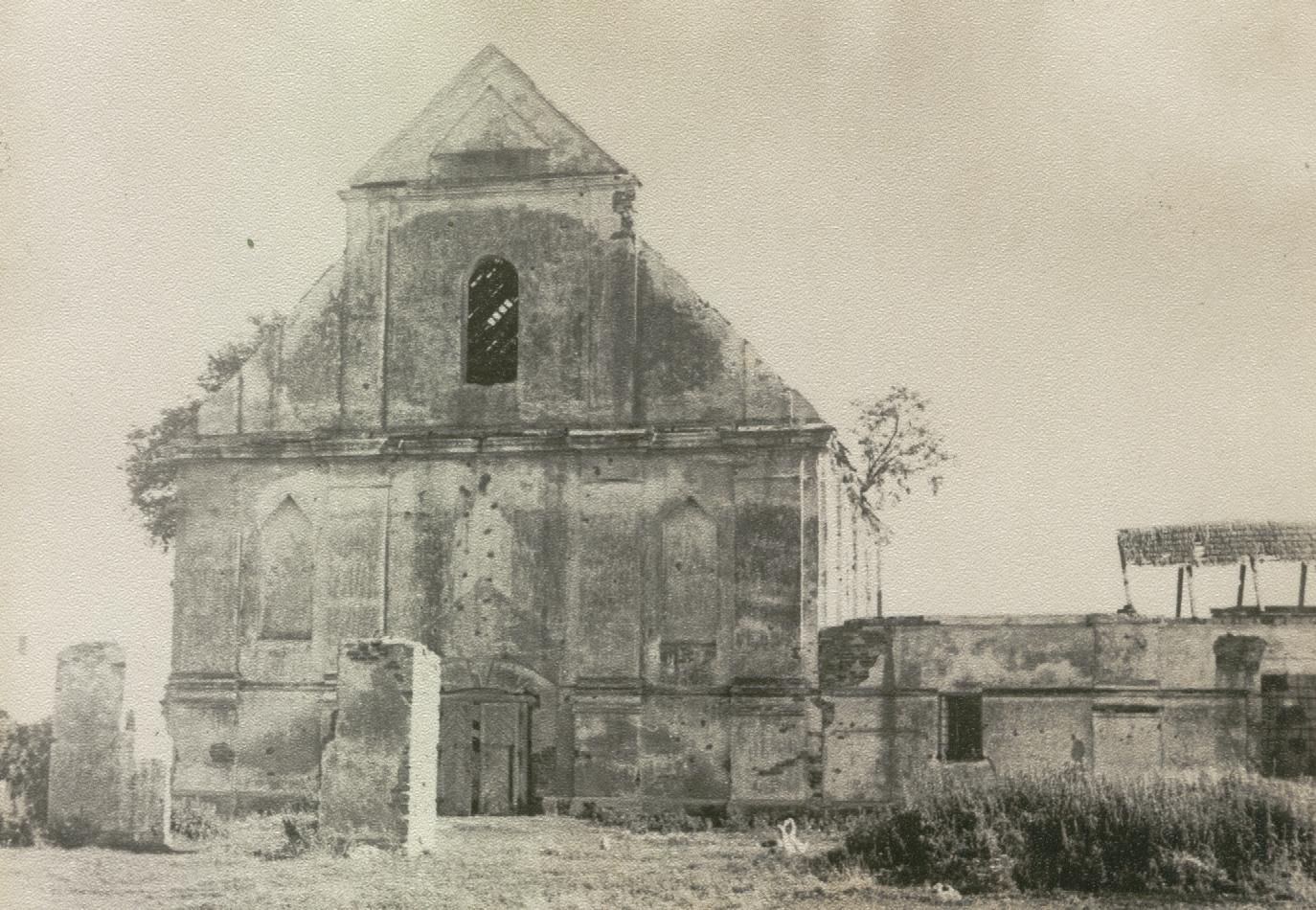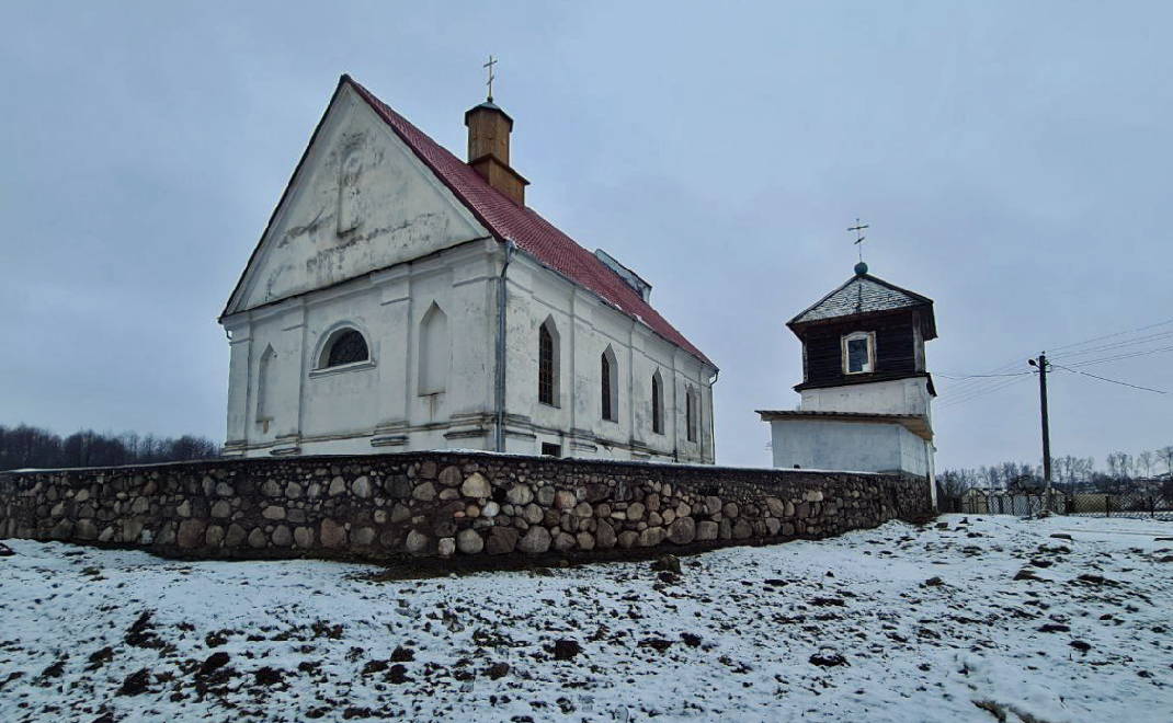 За паўвярсты ад плябаніі, на парафіяльных могілках, на высокім узгорку стаяў “касцельчык”, пабудаваны не пазней чым у другой палове XVIII стагоддзя. Ён уяўляў сабой невялікі драўляны аб’ём са званіцай над ім тыпу вежы. “Парафіяльнае набажэнства праводзіцца ў старой, струхлелай амаль царкве, якая стаіць на парафіяльных могілках. Змешчаныя ў ім алтары і абразы ўзятыя са старой, ужо не існуючай царквы. Цяперашні пробашч умацаваў сцены апорамі і клямарамі, але моцна працякаючы дах чакае яшчэ аднаго дабрадзея”.