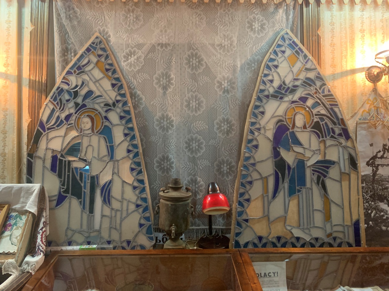 Вітражы з капліцы-пахавальні, якія зрабілі італьянцы, зараз захоўваюцца ў музеі