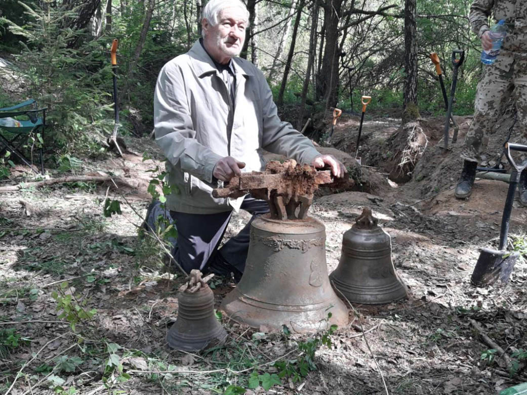 Уладзіслаў Лапо побач са знойдзенымі званамі