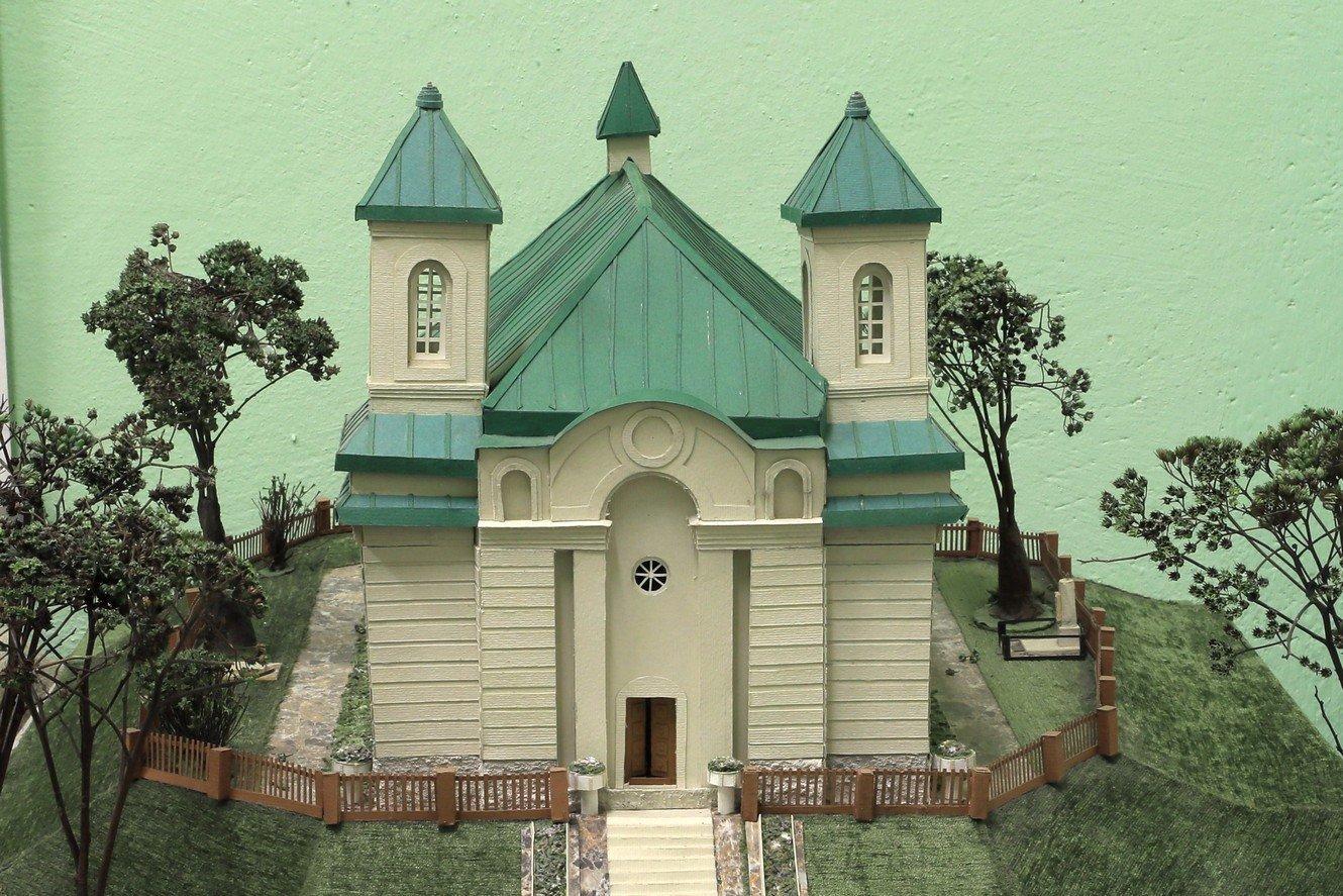 Макет касцёла, выкананы вучнямі Мінскай гімназіі №75 пад кіраўніцтвам Т. Вайтэнка, фота Сяргея Плыткевіча